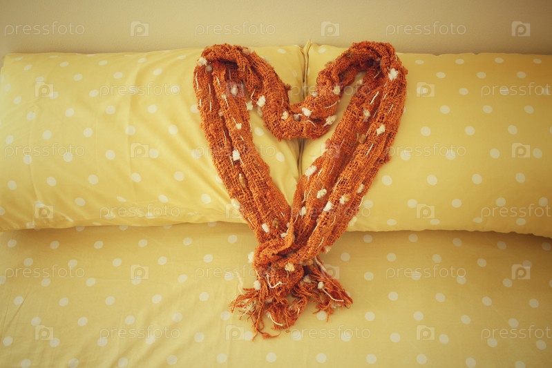 Шарф, сложенный в форме сердца, на подушках