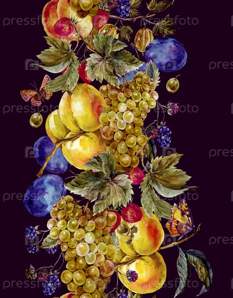Осенние акварели бесшовные границы с фруктами и бабочек