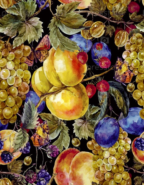 Осенний урожай бесшовный паттерн с фруктами и бабочки
