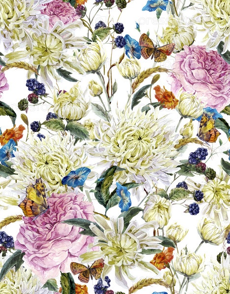 Акварель цветочные бесшовный фон с хризантемами
