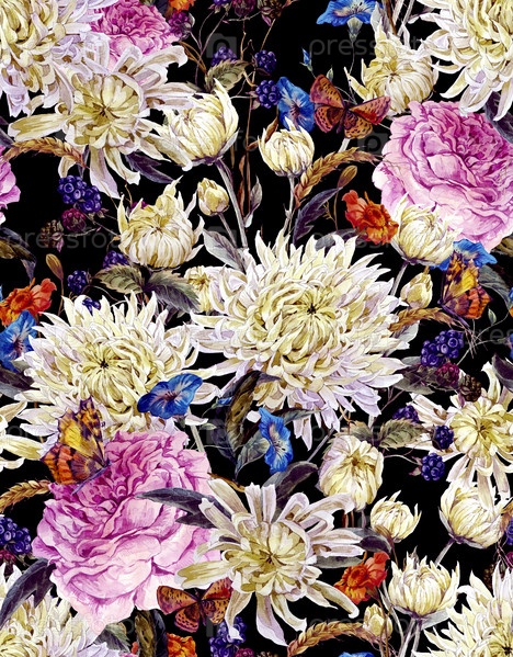 Акварель цветочные бесшовный фон с хризантемами