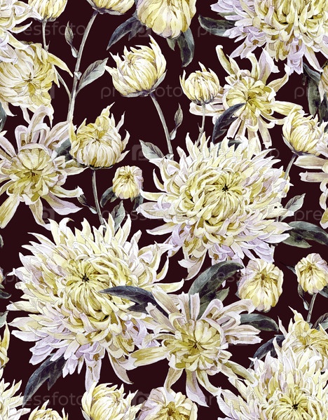 Винтажные акварель цветочные бесшовный фон с хризантемами