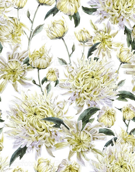 Винтажные акварель цветочные бесшовный фон с хризантемами