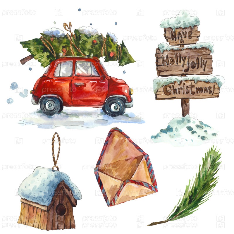Акварель старинные рождественские набор, Иллюстрация праздник