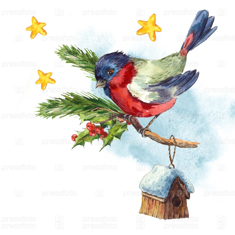 Акварель Винтаж с Новым годом и Рождественским приветствием