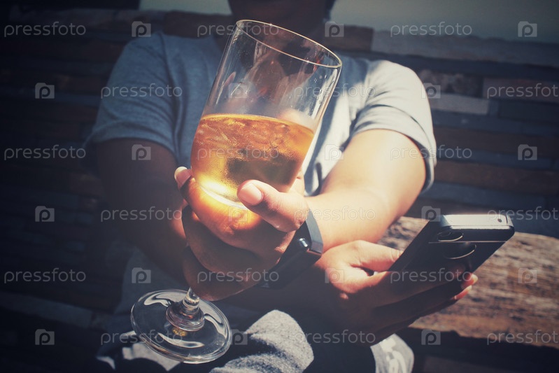 Бокал бренди с смартфон с стороны
