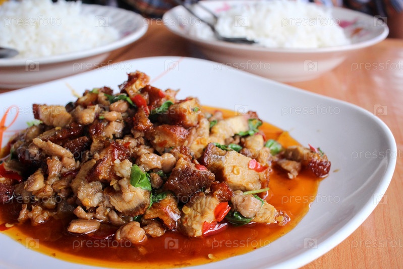 Жареная свинина и базиликом