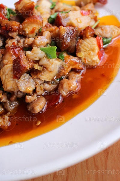 Жареная свинина и базиликом