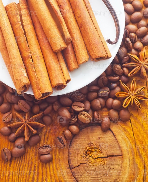 Корица и кофейные зерна