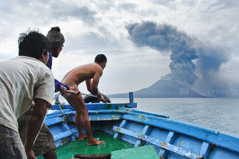Лодка возле Вулкан Анак Кракатау