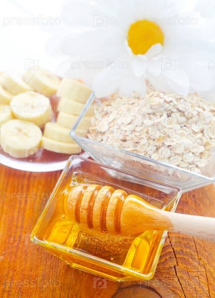 Мед и хлопья на деревянной доске
