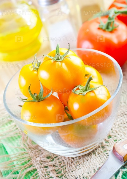 Желтый помидор в стеклянной чаше