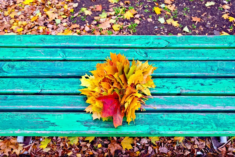 Кленовые листья на скамейке
