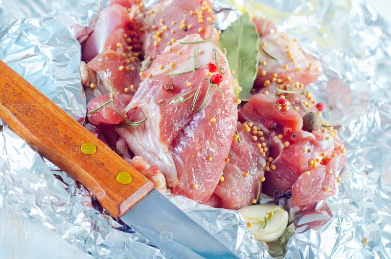 Сырое мясо в фольге