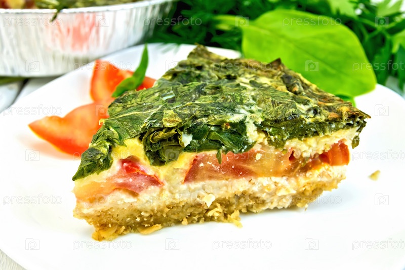 Пирог кельтский с шпинатом в белой тарелке