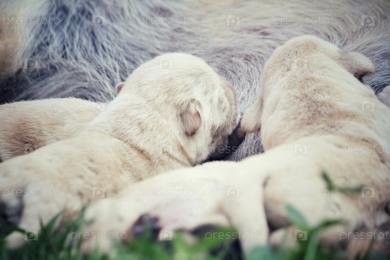 Кормящая мама и Лабрадор щенки
