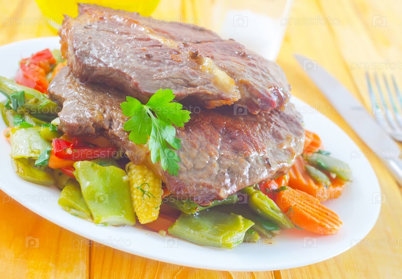 Запеченное мясо с овощами