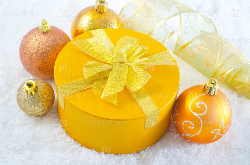 Рождественские украшения и коробка для подарка