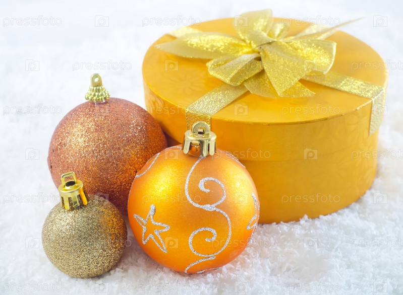 Рождественские украшения и коробка для подарка