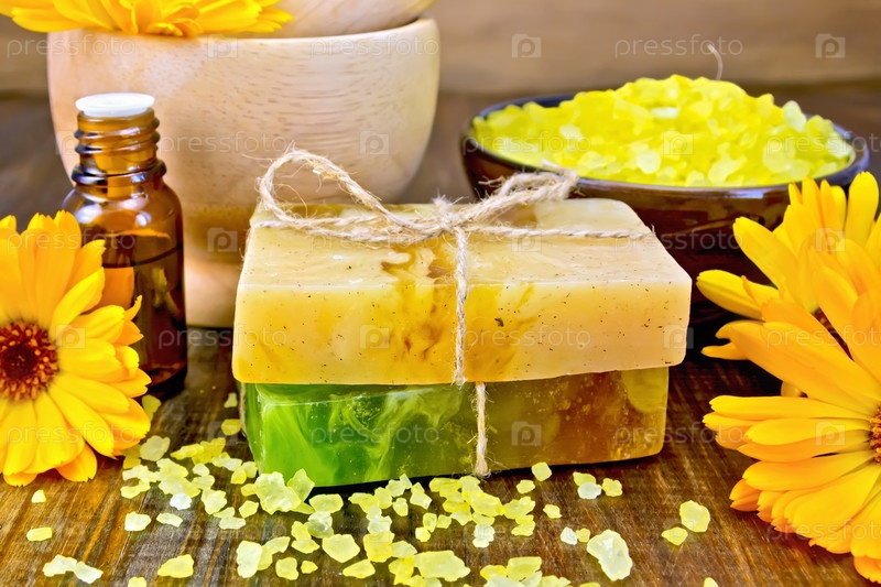 Мыло самодельное и соль с календулой