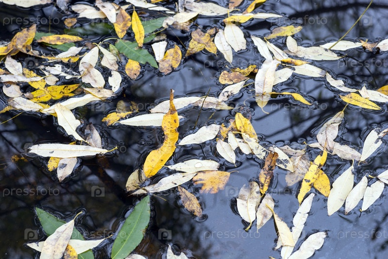 Желтые листья плавают на воде
