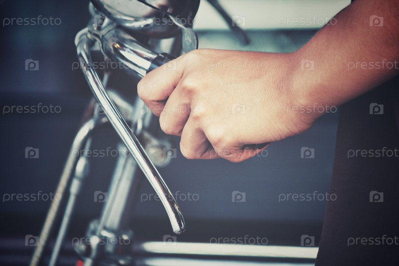 Рука на велосипедном руле