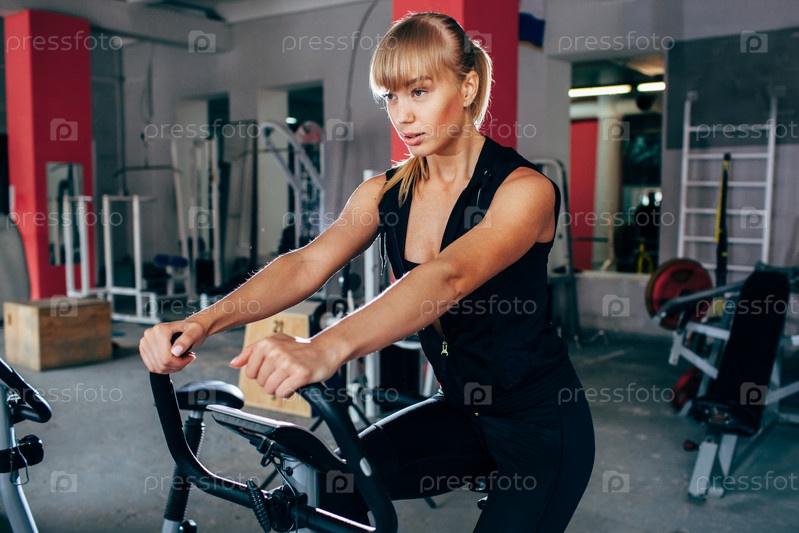 Блондинка на велотренажере
