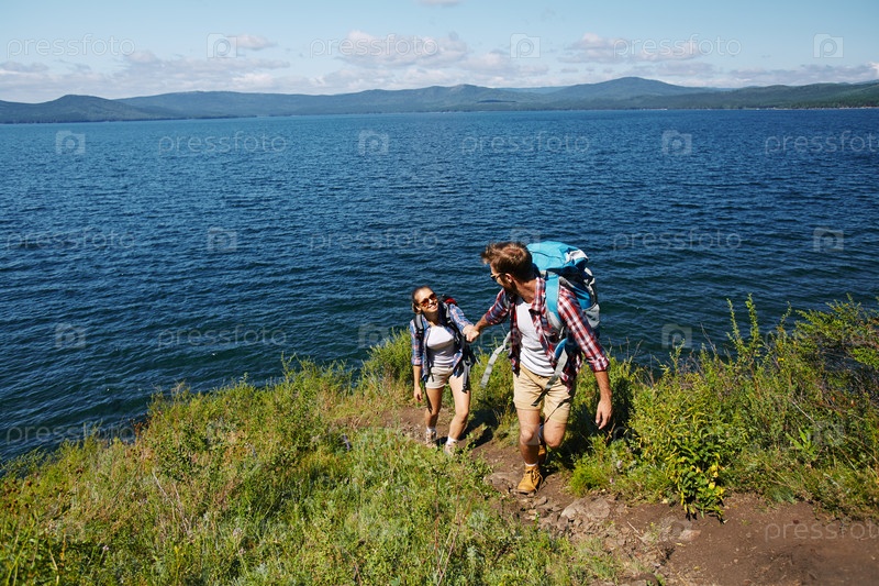 Молодая пара идет в гору
