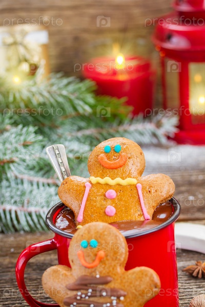 Пряничный человечек с кружкой горячего шоколада