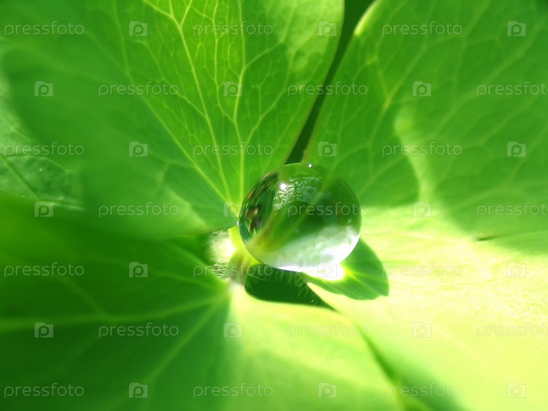 Близкий снимок капли дождя на зеленом листе