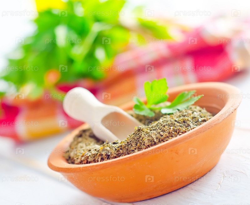 Сухой петрушки в чашу, зеленой петрушки