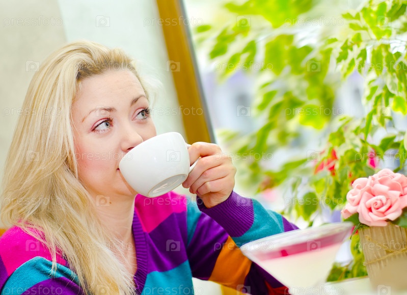 Женщина пьет кофе