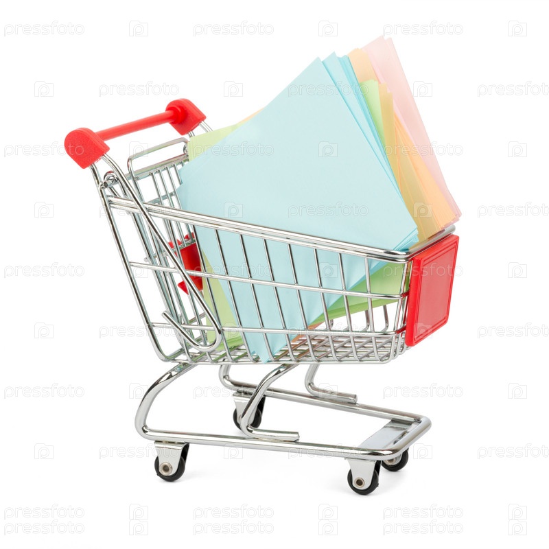 Торговая тележка с бумажками для заметок
