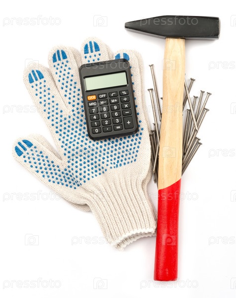 Перчатки с молотком и калькулятор