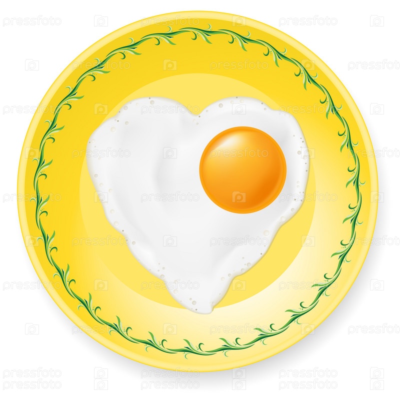 Яичница в форме сердца на тарелке