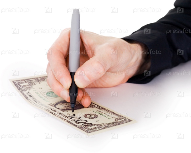 Мужской ручной рисунок nil на долларе сфотографирован на белом фоне