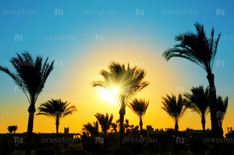 Силуэт пальмы против заходящего солнца