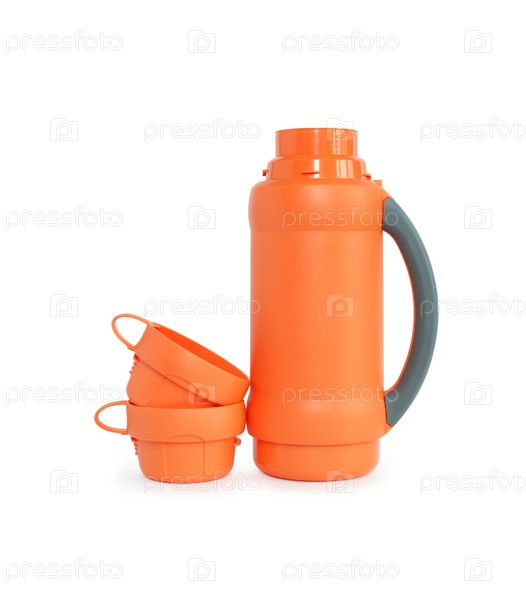 Оранжевый термос и две кружки
