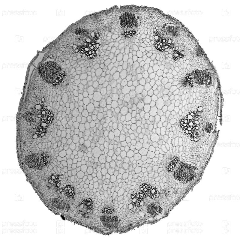 Поперечное подсолнуха сечение вид сквозь микроскоп