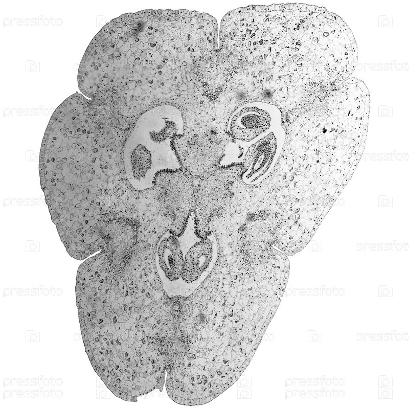Поперечное сечение пестика Лили сквозь микроскоп в черно-белом