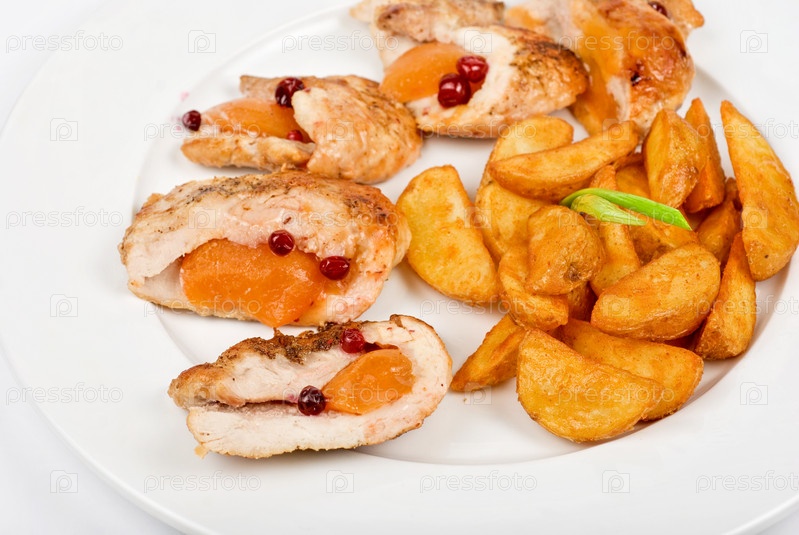 Курица с абрикосами и жареный картофель