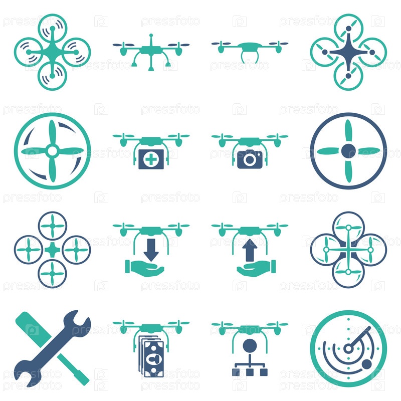 Летающих беспилотных плоский биколор иконки