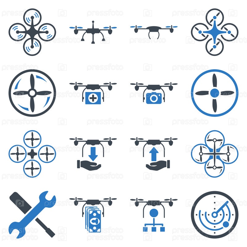 Летающих беспилотных плоский биколор иконки
