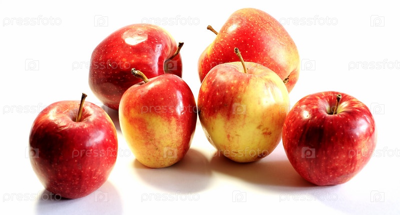 Спелые яблоки на белом
