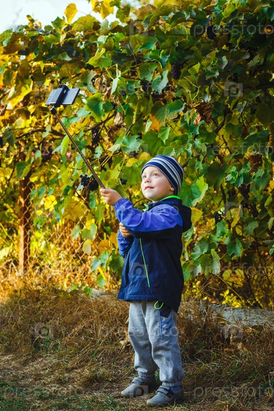 Маленький мальчик делает селфи в саду