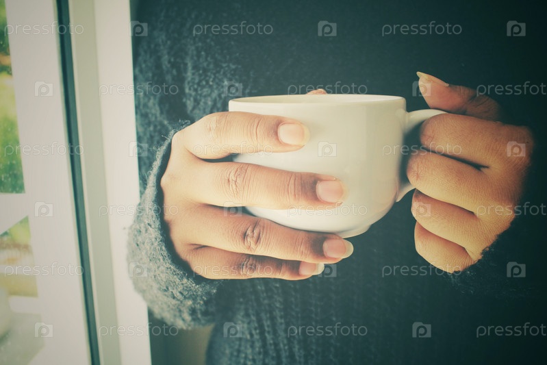 Женщина с чашечкой кофе у окна