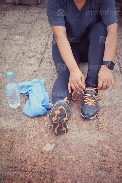 Женщина завязывает шнурки