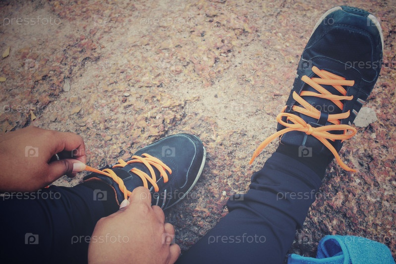 Женщина завязывает шнурки