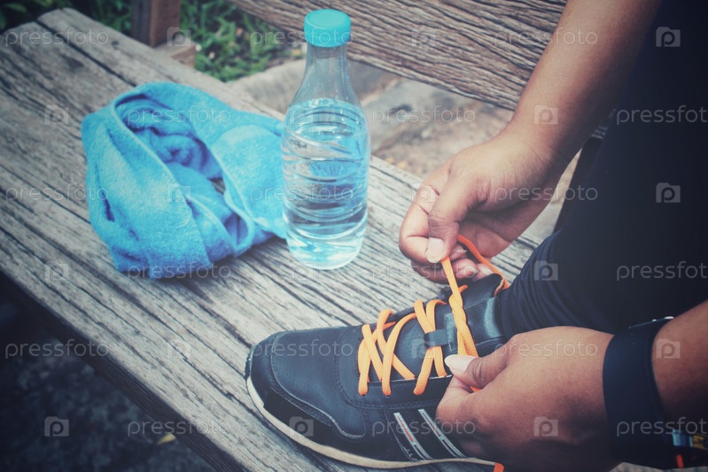 Женщина завязывает шнурки