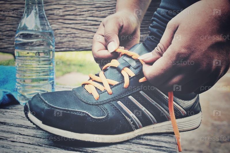 Женщина завязывает шнурки